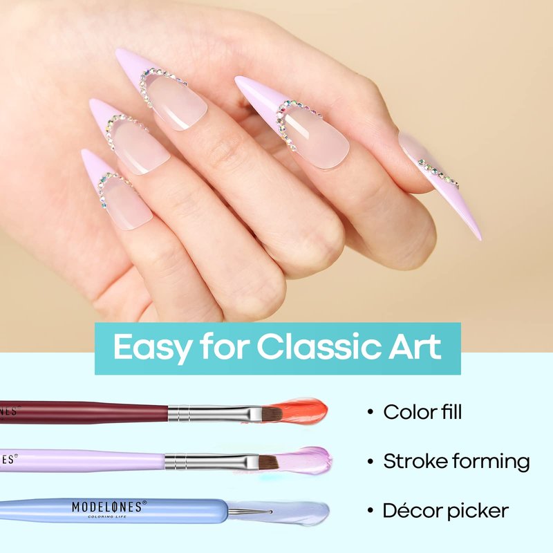 The Modelones Nail Art Kit includes 6 different types of nail art pens, such as Nail Extension Gel Brush, Builder Nail Gel Brush, Nail Art Liner Brush, Nail Dotting Pen, and Nail Art Design Pen. Made from high-quality hair, this set is perfect for creating professional-quality nail art designs. Whether you're a professional nail artist or DIY at home, this set provides everything you need for stunning and unique nail art designs, helping you to recreate any nail design your lil heart desires! Easy to handle and use, this set is perfect for both beginners and professionals. Add a touch of glamour to any occasion with the Modelones Nail Art Brushes Set.