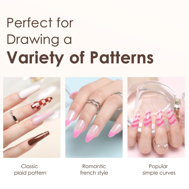 - 💗【Craft Your Own Nail Art】This nail design brushes is good for gel polish nail art, drawing lines, painting delicate patterns, painting flowers, drawing checkered patterns, filling in colors, marbling, swirling, blending, short strokes, etc. Meet all your various manicure needs, unleash your inner nail artist potential.