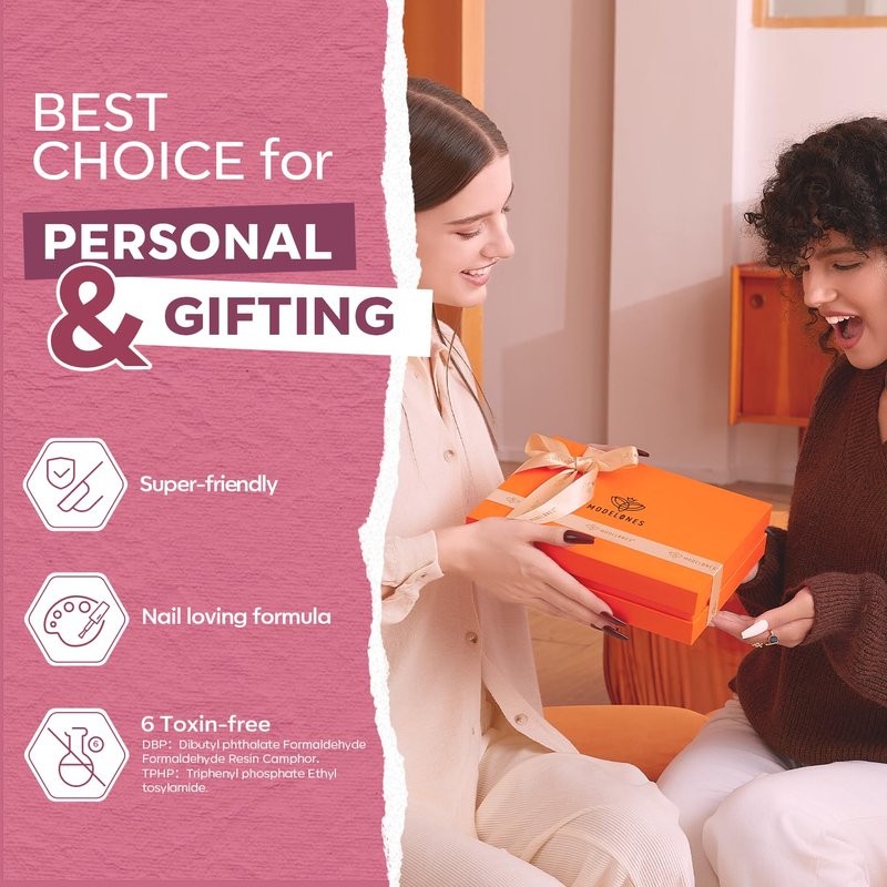 Modelones new 12-color nail polish set, specially curated for the fall and winter seasons. Featuring a luxurious palette of rich reds, deep browns, shimmering golds, and regal purples, this set offers the perfect shades to complement your seasonal style. With a quick-drying, long-lasting formula and effortless application, it’s ideal for both everyday wear and special occasions. Whether for personal use or as a thoughtful gift, this set brings warmth and elegance to your nails all season long.