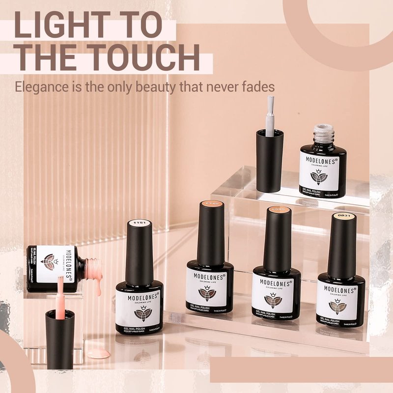 - š ćForefront Fashion Gel Polish KitćDesigned in the US, modelones nude skin tone nail gel 7ml (0.24oz) each, popular colors suitable for all seasons and daily routine life. Easy to match any style of your outfits. Achieve the best salon-looking gel mani at home for a small fee.