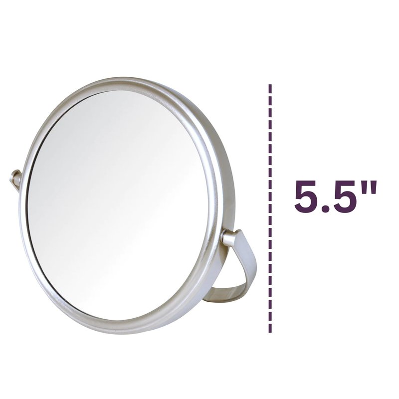 - SPECIFICATIONS - This simple, elegant personal mirror is perfect for any bathroom. The 5.5-inch diameter mirror is great for shaving, grooming, makeup application and more! The tabletop mirror has a lightweight base for easy mobility. Protected under a 1-year warranty