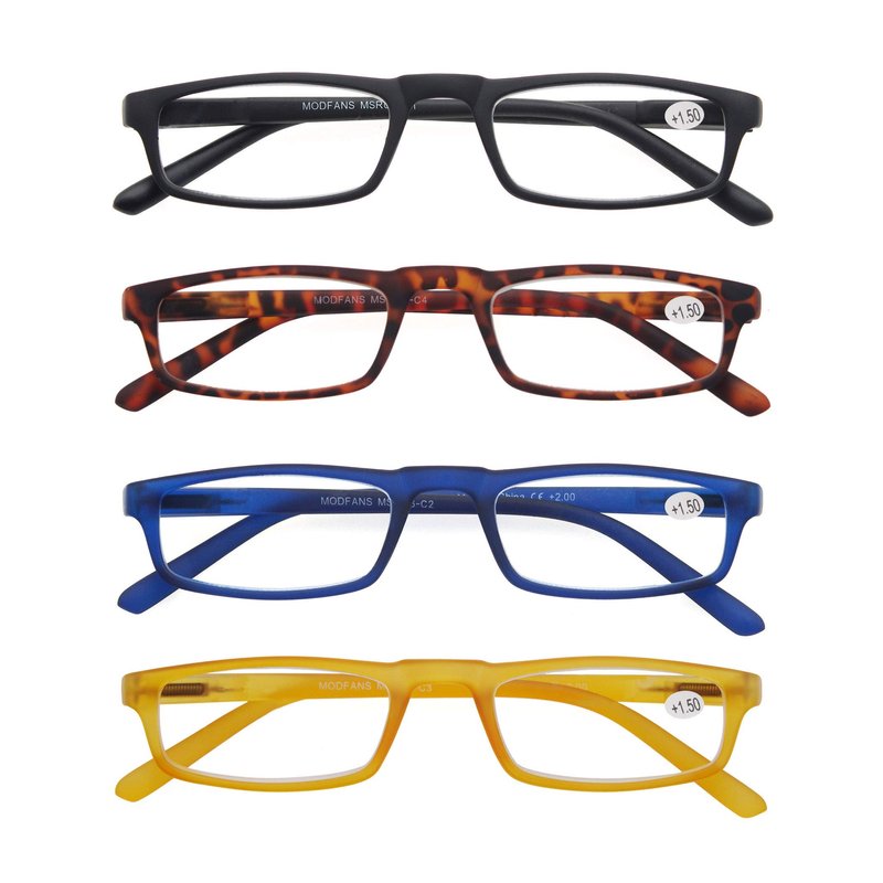 - 【Package/Design】 Inculding 4 pair plastic frame women/men glasses for reading ,4 pouch and 1 cloth. Small reading glasses women/men have black/blue/yellow/tortoise colors.