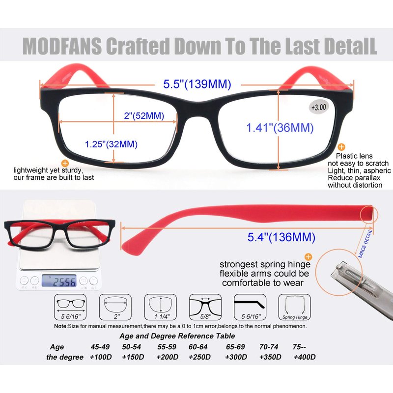 - LIGHTWEIGHT: a pair of reading glasses weighs 0.795OZ, 0.05IB, 22.54G, less than the price of three $1 COINS, and reducing the burden on your ears and nose