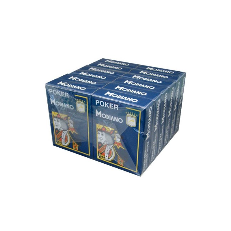 One deck Modiano Cristallo 100% Plastic Playing Cards, 4 PIP Jumbo Index. Modiano makes a powerful playing card. The card is ultra thick and very textured. The shuffle and cut feels more like traditional playing cards than any other brand. If you have ever felt a plastic card and said "this is flimsy" Modiano is the card for you. This is the unique 4 PIP Jumbo Index. 8 colors to choose from: red, orange, brown, violet, light blue, dark blue, light green and dark green.