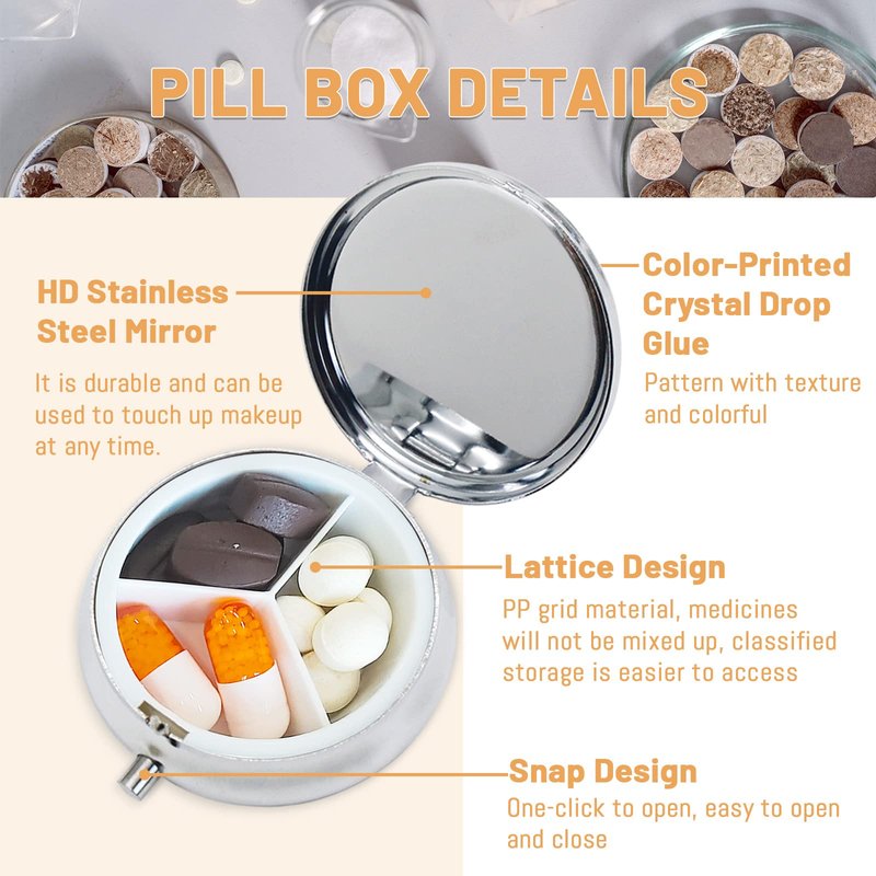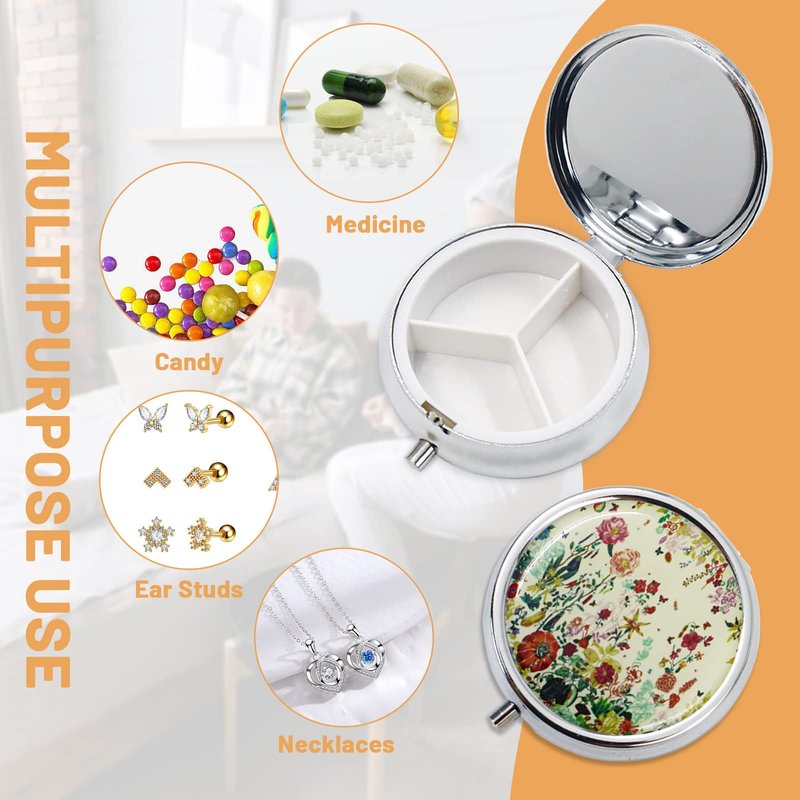 ●EXQUISITE PATTERN: The elegant pattern on the lid of the small pill container is very smooth and pleasing to the eye, which can bring you a good mood of use.