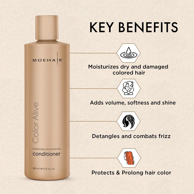 - ✔️ SAFE AND NON-TOXIC FORMULATION — Moehair Color Alive Conditioner is not tested on animals. The formulation is safe without any toxic ingredients that might damage hair. The hair conditioner is free of harmful ingredients: phthalates, paraben, and sulfate. Treat your tresses to the hydrating conditioner for ultimate nourishment