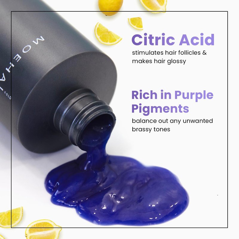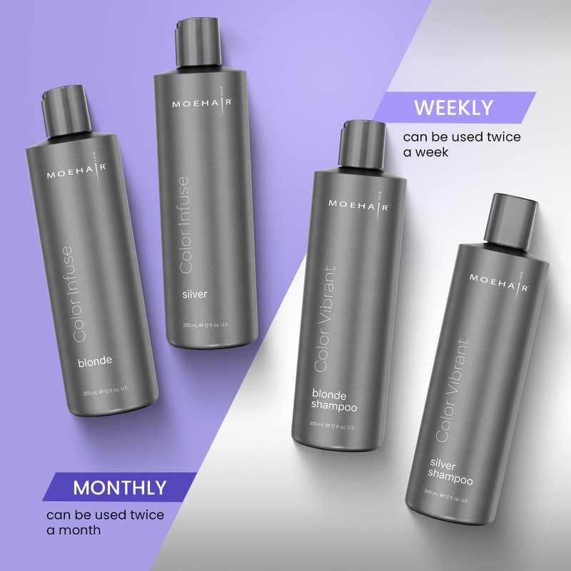 - ✔️ HOW TO USE — Apply Moehair Color Infuse Silver as a toning hair mask 1-2 times monthly to prevent color from fading. Take a generous amount of purple hair toner and apply it to damp hair. Use a wide-toothed comb to distribute the product evenly. Let it sit for 3-5 minutes, then rinse with water. It works as a color charm toner that removes unwanted brass from your hair without stripping it of natural oils and nutrients