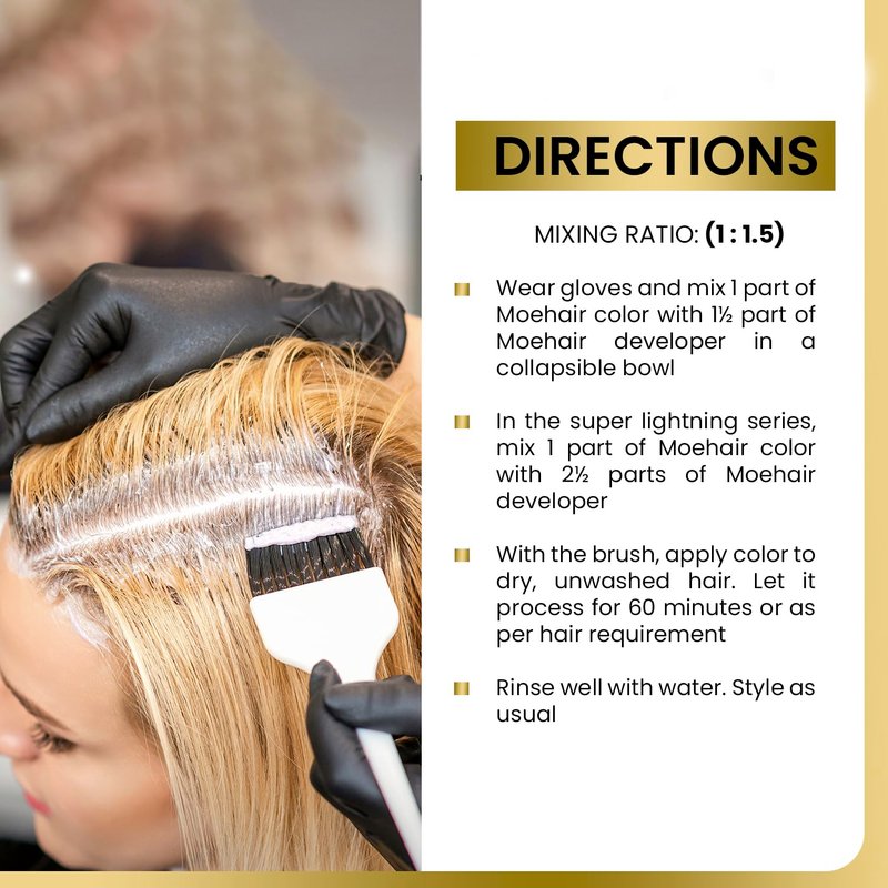 - ✔️ HOW TO USE THE COLORING CRÈME — The application is easy with the non-drip formulation. Mix 1 part of 5NN Light Brown Intense color with 1½ part of Moehair developer. Apply the permanent hair color mix on washed and dry hair, leave it on for 60 minutes, rinse off with shampoo, followed by conditioner. For root touch-up, apply the formula on new regrowth and process for 30 minutes before rinsing off