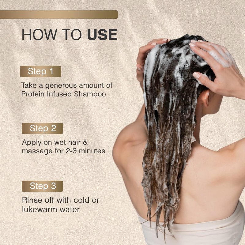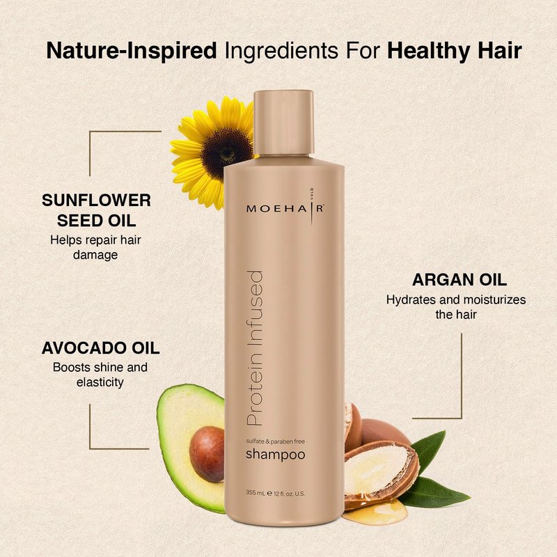 - ✔️HOW TO USE — The protein shampoo is easy, like any regular shampoo. Pour a generous amount of the Moehair Protein Infused Shampoo on your palm. Apply the hair shampoo on wet hair from root to tip. Deeply cleanse your hair and wash it off with cold or lukewarm water. Get protein-infused shampoo and conditioner set for a thorough cleansing hair ritual. It deeply cleanses the product build-up and acts as a scalp treatment