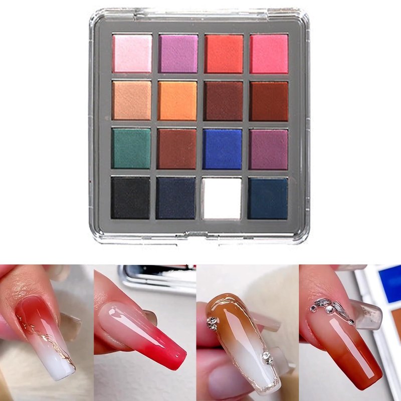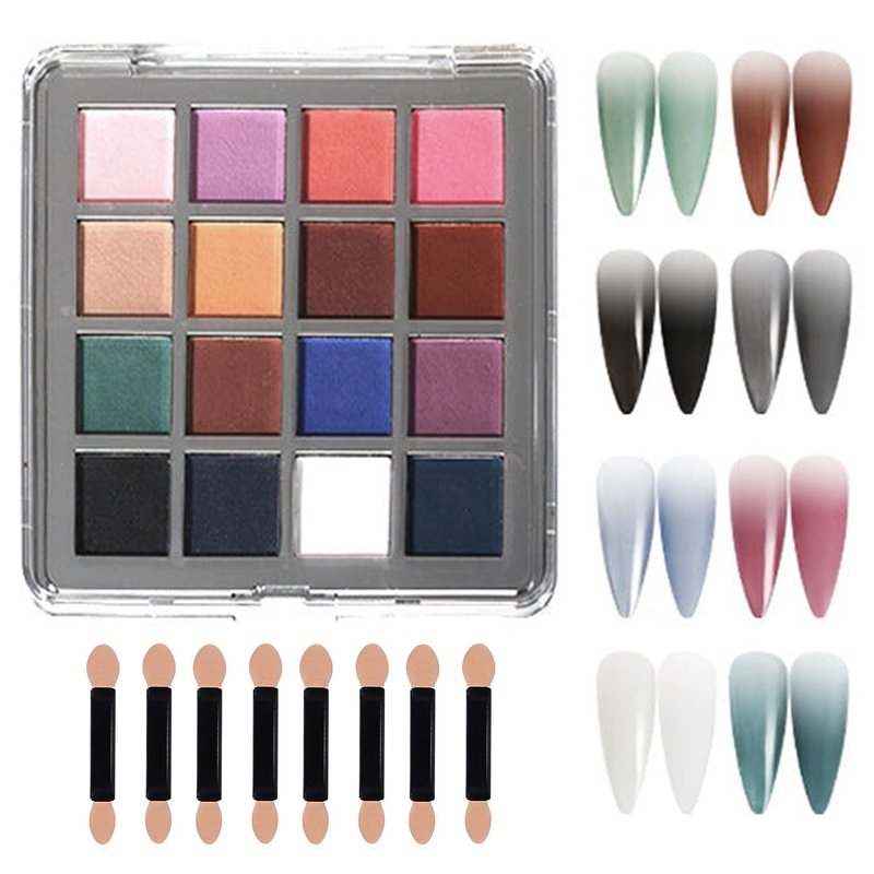 - PACKAGE INCLUDE: you will get 16 color nail powder palette *1, sponge stick *8.