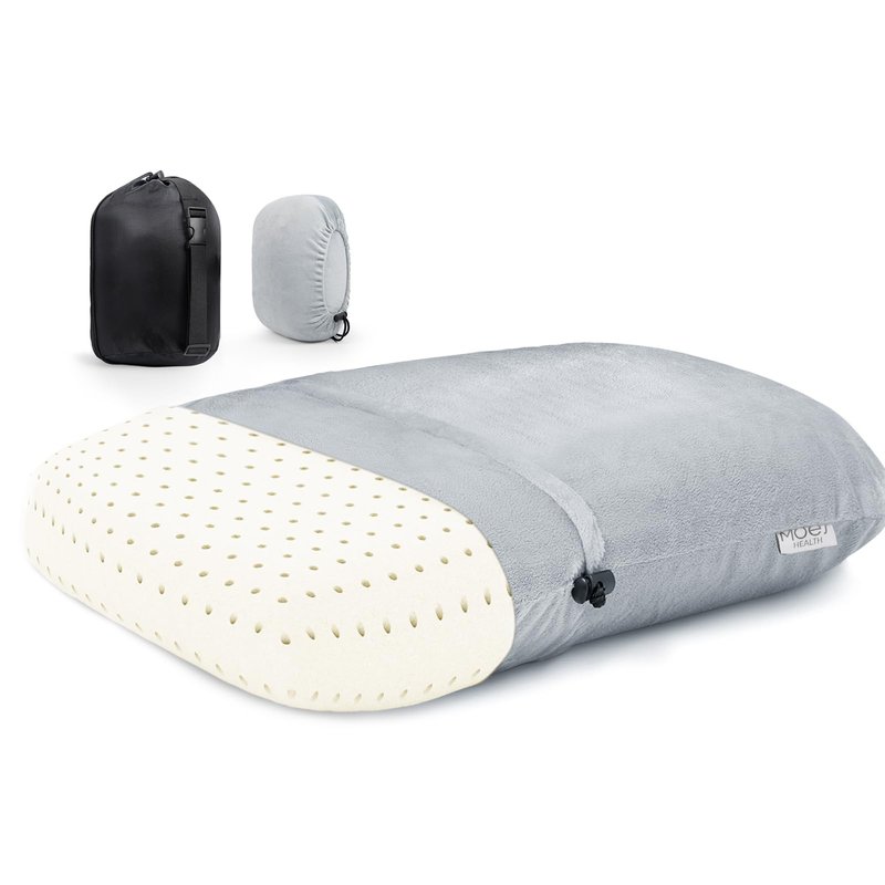 MOES Camping Pillow, Memory Foam Travel Pillow with Storage Bag, Backpacking, Airplane, Car Pillow for Sleeping, Removable Machine Washable Cover, Camping Essentials