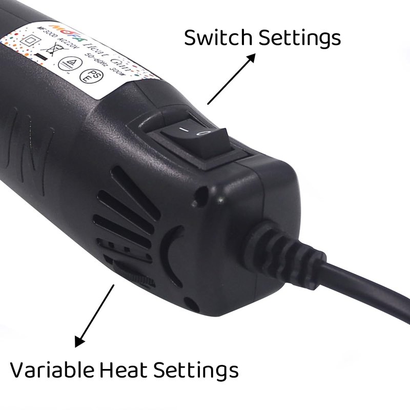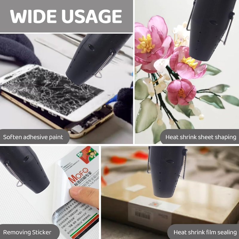 - Scientific Ergonomic Design & Wide Applications: mofa heat gun Pencil-like design and light weight make the hot air gun fit comfortably in your hand. And the mini heat gun is especially ideal for getting into hard-to-reach places and concentrating high heat on the tight area.; Ideal use for heat shrink tubing, embossing, drying paint, paper, fabrics, craft foams, glue, ink, DIY, firm shape, clay.
