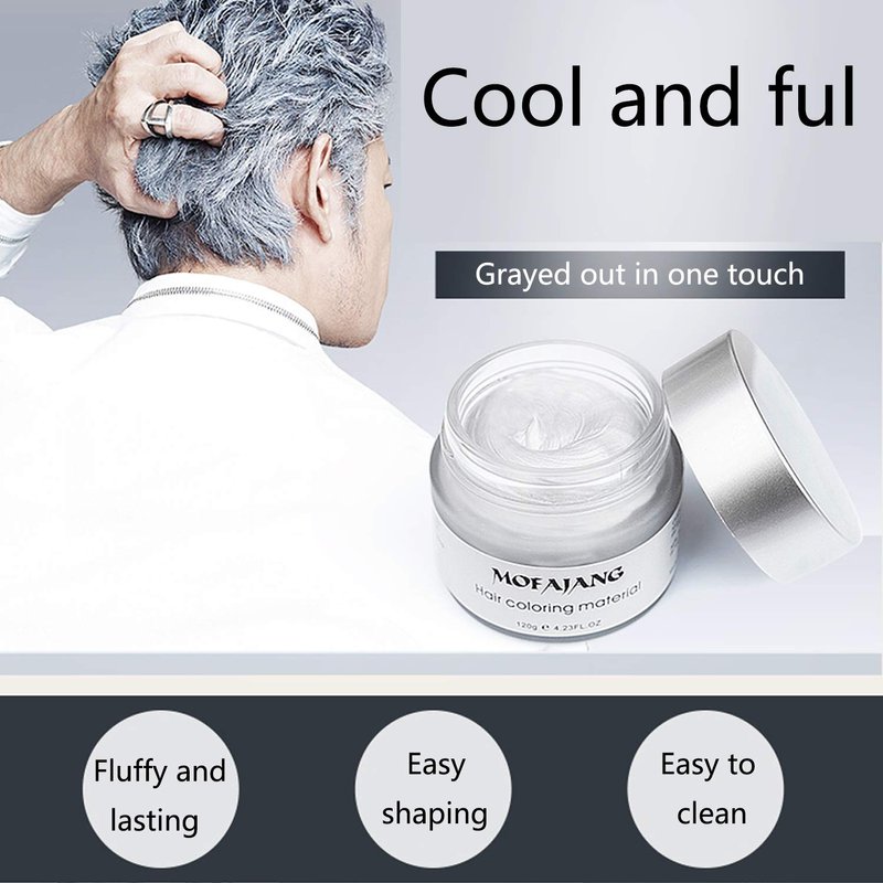 Mofajang Hair Wax Color Styling Cream Mud, Natural Hairstyle Color Pomade, Washable Temporary (Gray)