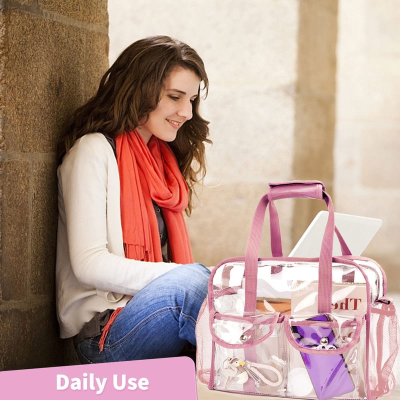 - 【Security and Conveniently】- Now many places clearly stipulate the use of clear handbag to improve safety. When you pass the security check, you don’t need to be asked to take everything out of the bag, allowing the staff to check your bag easily and without contact, which is safe and time-saving. Clear bags for women suitable for travel, beach, clear lunch bags for work, sports events and concert, etc.