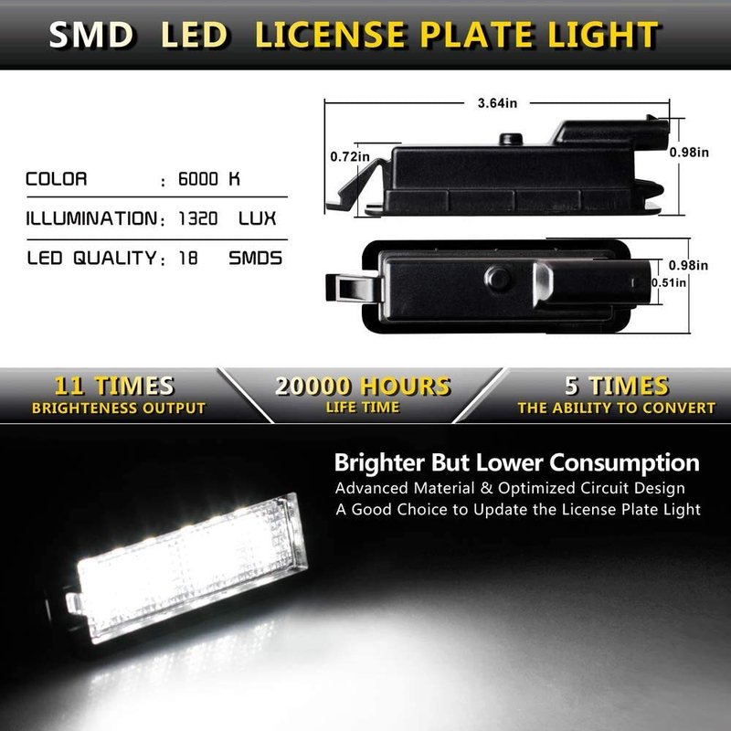 LED Type: 18 SMD LEDs (Each license plate light)