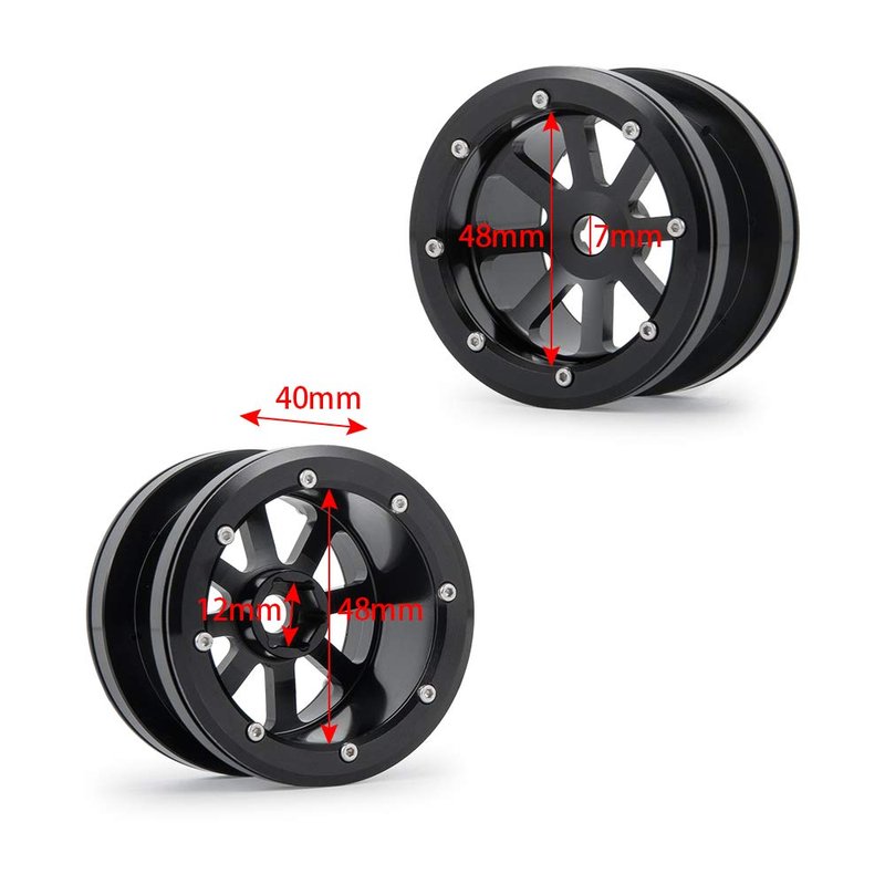 MOHERO 2.2” Alloy Beadlock 1/10 RC Wheel Rims For RC Crawler Axial Wraith Car (Black)
