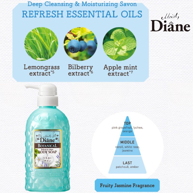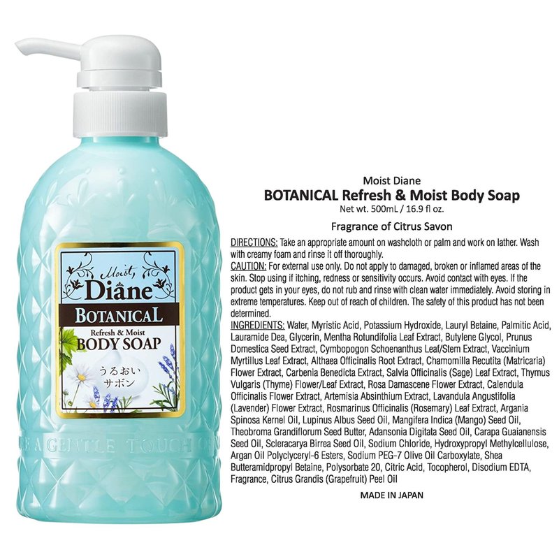 Moist Diane Hydrating & Moisturuizing Body Soap, Japan Natural Body Gel for Kids, Women, Men w/ Dry & Sensitive Skin, Organic Body Wash with Pump, Sulfate-Free Liquid Soap, Botanical Citrus 16.9 Fl Oz