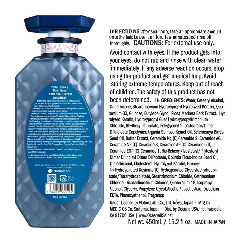 MOIST DIANE Repair Hair Conditioner Treatment for Men & Women, Organic & Natural Hydrating & Moisturizing Japanese Conditioner with Argan Oil & Vitamin E Haircare, Extra Night Repair, 15.2 Fl Oz/450ml