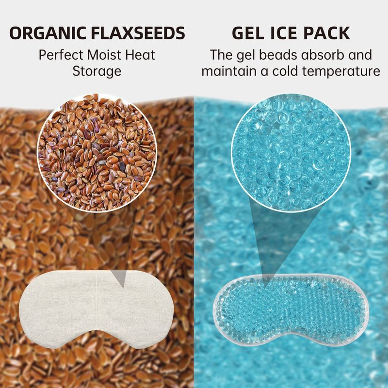 - COLD COMPRESS--This eye mask also included an ice pack.The ice beads of the ice pack can absorb and keep the coldness to relax your eyes.