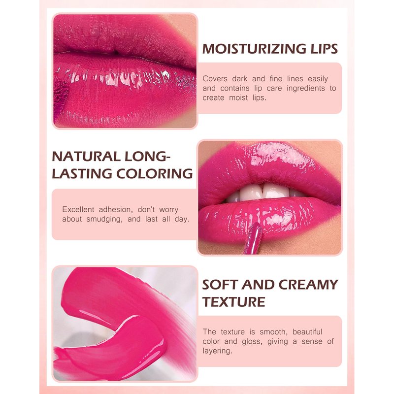 - MOISTURIZING & HEALTHY FORMULA - This lightweight and hydrating Lip Tint Lip Gloss contains moisturizing ingredients that lock in moisture for a strong moisturizing effect that hydrates lips and moisturizes dry and chapped lips. It forms a long-lasting coating that retains pigment and moisture without drying out the lips. The vibrant color makes your lips look fuller and more vibrant. No matter what type of skin you have, especially sensitive skin, you can use it with confidence.