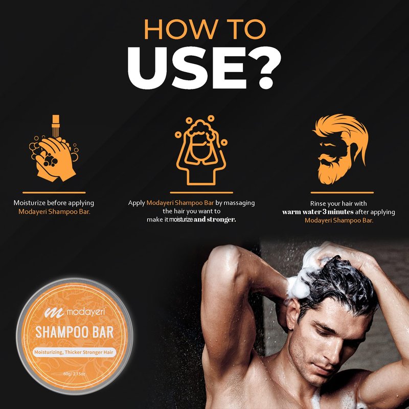 Moisturizing, Thicker Stronger shampoo bar is suitable for all hair types. it is perfect for both men and women. the bar design helps save the earth from using plastic bottles and containers. it is very easy to use just gently massage the bar through your hair and scalp with a circular motion. Let the product stay on your hair for about 2-3 minutes until you finish your shower.