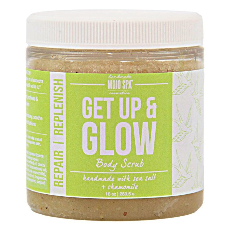 Mojo Spa Get Up & Glow Body Scrub | Bergamot, Juniper, Jasmine Scent | Moisturizing Sea Salt Exfoliator | 10 oz