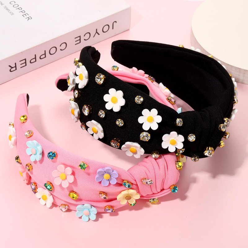 mokkia 2PCS Flower Headband for Women Daisy Floral Headbands Jeweled Spring Summer Headband Accessories Beach Vacation Headwear Outfits Pool Party Favors Gifts (2PC Flower B)
