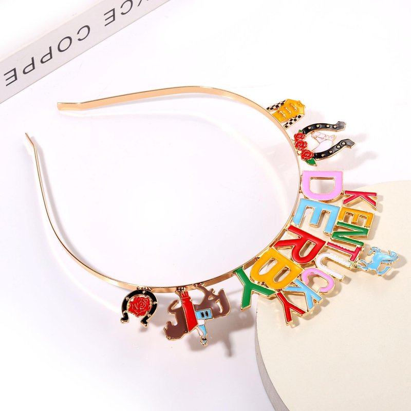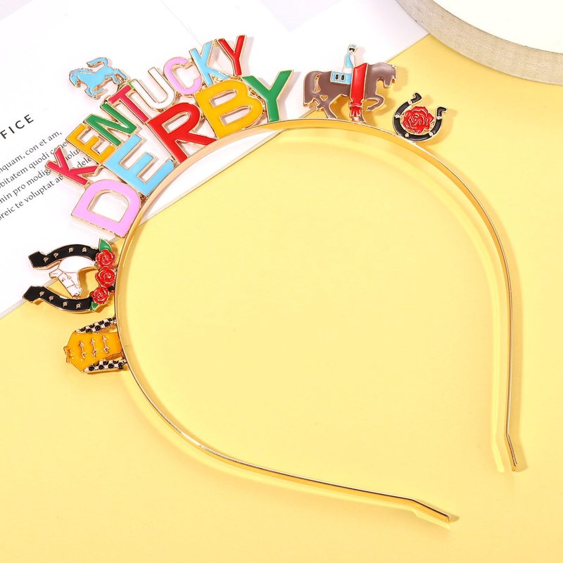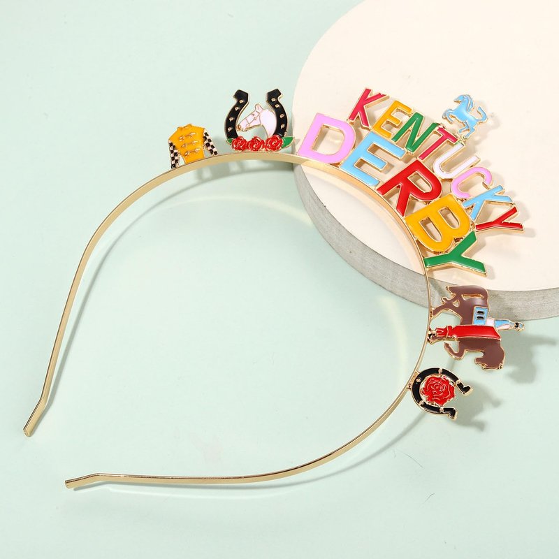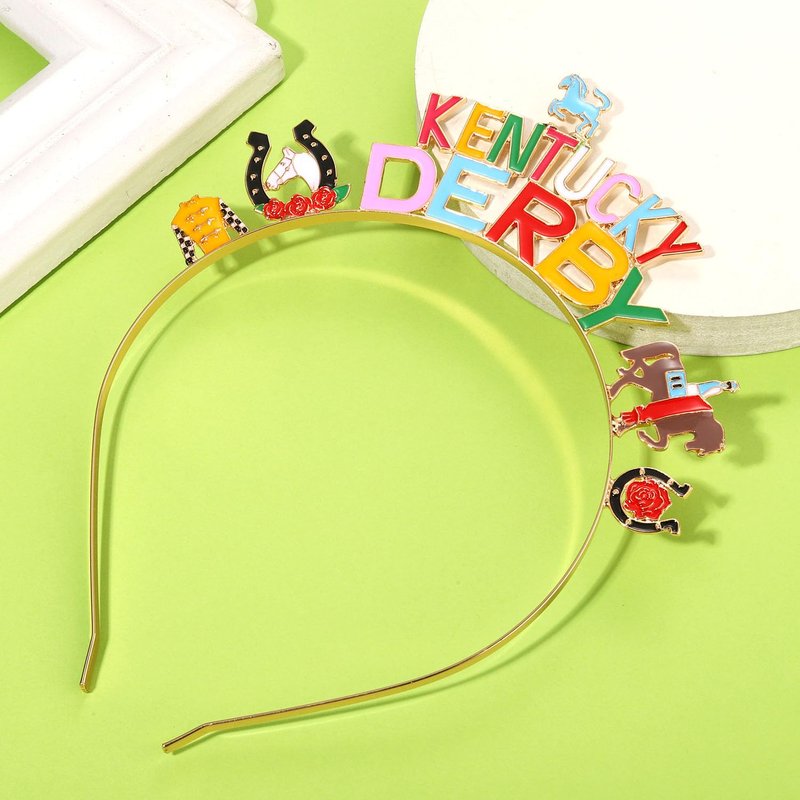 Features colorful letter ‘KENTUCKY DERBY’ set on gold hair hoop accent with derby elements like horse, horseshoe, riding suit and rose flower, they capture the spirit of the horse race and make a statement that celebrates your passion for horse, providing subtle sparkle for a timeless and fun look.
