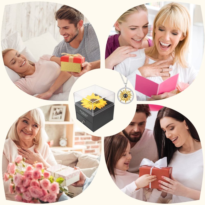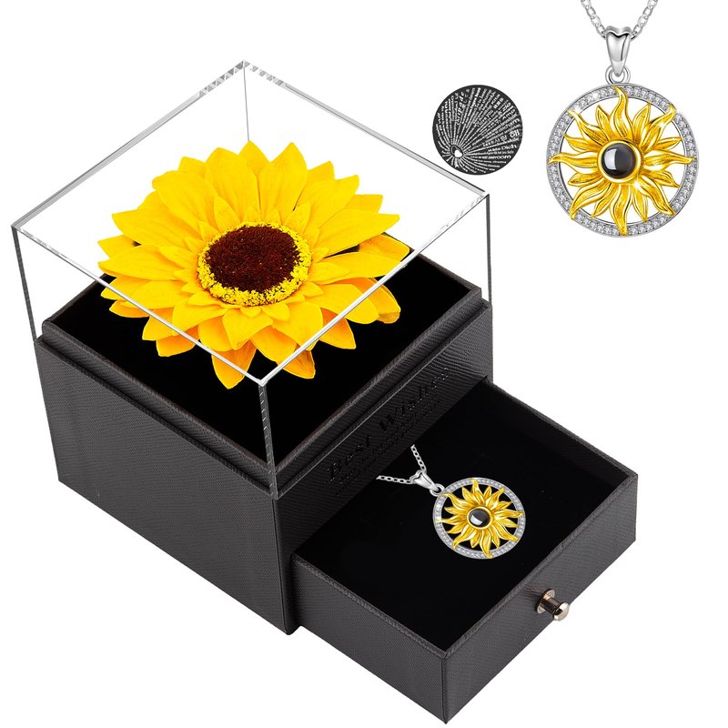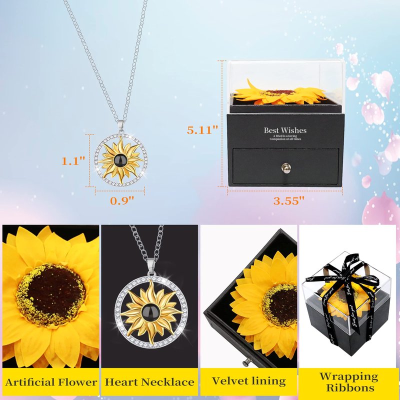 - 🌻Perfect Gifts for Mom --- Wonderful birthday mother’s day gifts for moms from daughter or son, Artificial Sunflower and necklace is very exquisite and pretty, Sunflower necklace inside hide 100 words I love you, tell her you love her everyday and you are my sunshine. Moms day gifts for her.