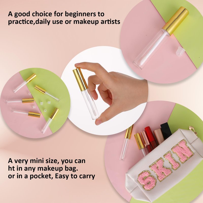 - 【Versatile Usage】The package contains 5 mini reusable clear empty lip gloss tubes. These empty lip gloss tubes are perfect for DIY lip gloss lovers, makeup artists and beauty professionals. Such as lip balm, lip gloss, essential oil or perfume samples, giving you endless possibilities to show your unique style.