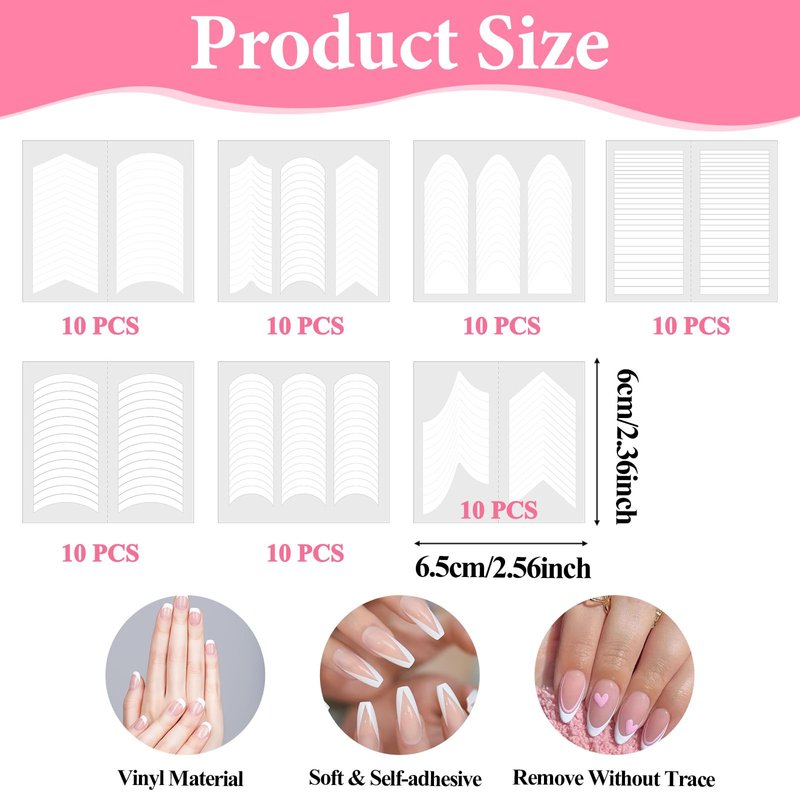 - Wide Application: With these nail art stencils, there is no need to use a drawing pen to draw French edges, these French nail stickers are fit for salons, nail art schools, and nail art learners, and help you make beautiful and shining nail art. Can be used on the toe and false nails also!