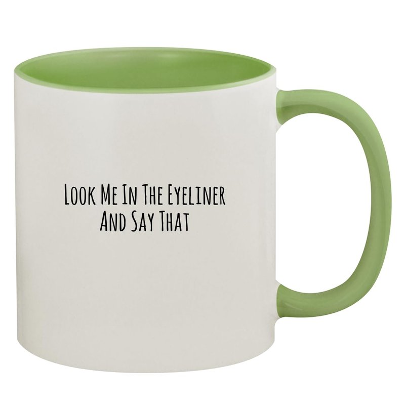 Molandra Products Look Me In The Eyeliner And Say That - 11oz Ceramic Colored Inside & Handle Coffee Mug, Light Green