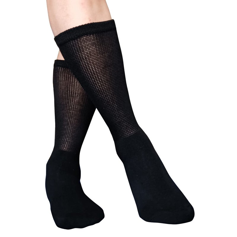 - SUPER WIDER TOP FOR DIABETIC OR THICK FEET ANKLE LEG CALF – The design perfect for diabetic feet, swollen feet, thick swollen feet ankle, sensitive foot, improve foot circulation. These diabetes socks provide minimum compression to the leg, but stay up and are easy to put on and take off. Great idea for walkers, diabetes, swollen feet, pre-diabetics, office workers, elderly, plus size, hospital patients or anyone looking for a comfortable and non binding fit socks.