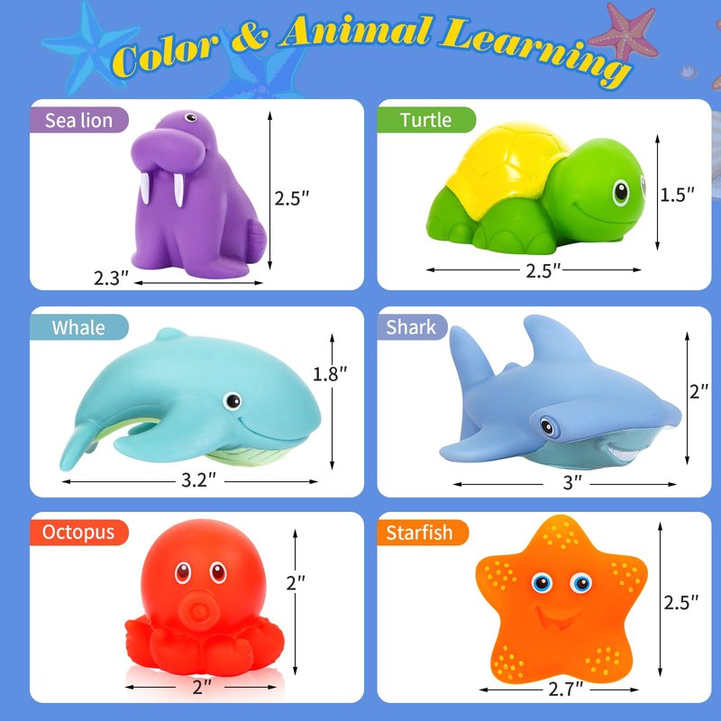 - 【Easy to Grab & Play】Our bath toys have a soft, smooth surface and are the perfect size for toddlers and babies to catch and play with. The cute sea animals theme will make bath time more enjoy for your little ones.