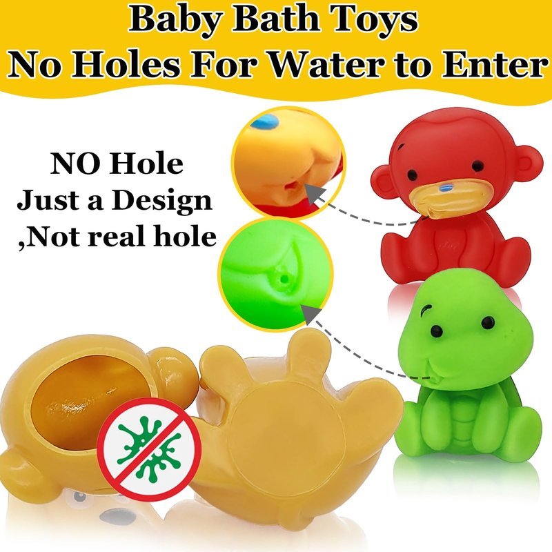- NO HOLE BATH TOYS - PARHILYAR bath toys without holes are sealess that don't trap water inside! Also, the Kids bath toys are easy to clean and dishwasher-safe. Not only use as infant bath toys, but also can play out of the tub!