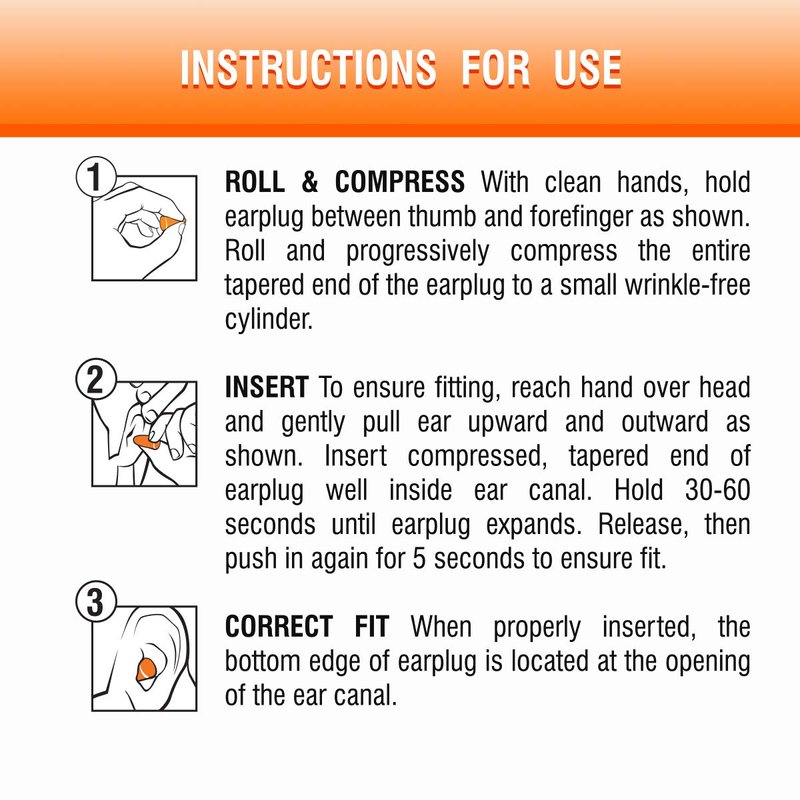 - Easy to use, shaped to fit even very small ear canals. Brilliant orange color for easy compliance checks.
