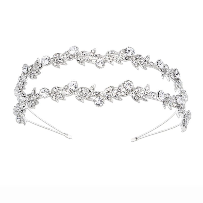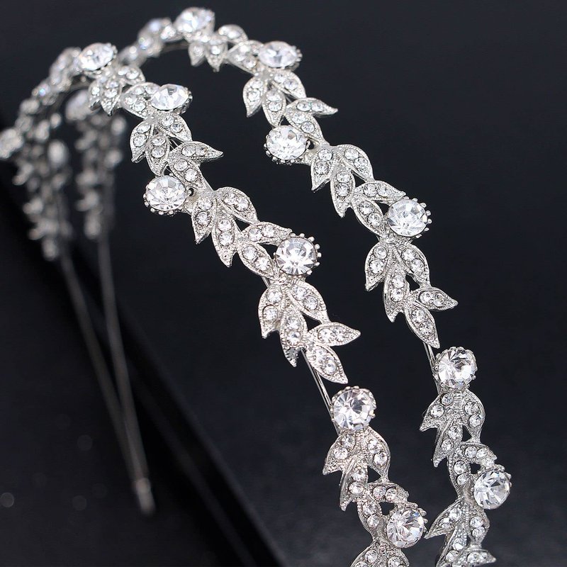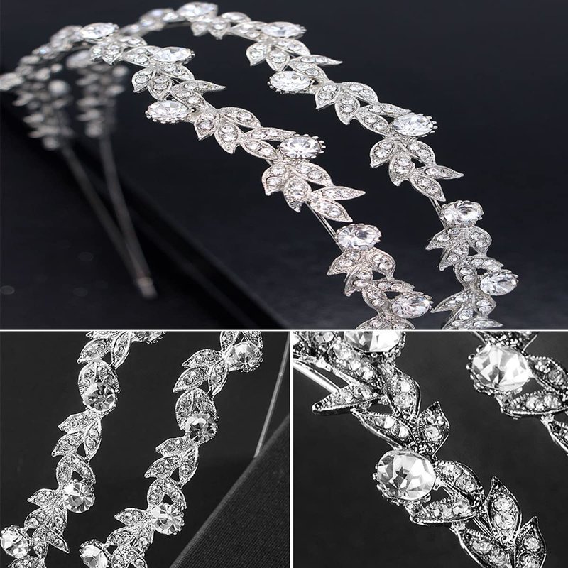 Package contains: 1Pc double row crystal flower and leaves crown headband