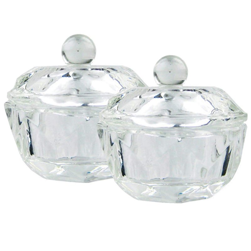 Package Content: 2 x Clear Nail Art Acrylic Liquid Powder Dappen Dish Bowl Glass Crystal Cup Glassware with Lid for Nail Art Manicure Care Tools