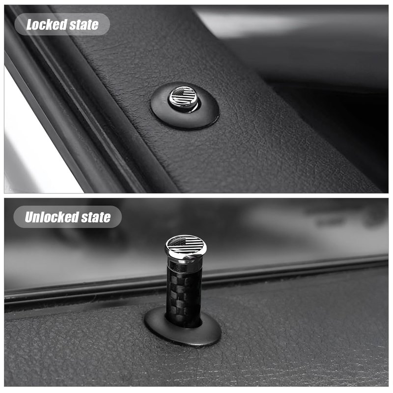 - 【Carbon Fiber & Copper】: Our door lock pin cover is made of reliable carbon fiber and copper, which is very light and durable. The bolt cap part is made of automotive grade plating technology, which is very smooth and bright and will never fade. The tough material allows it to effectively resist corrosion without deformation or fracture.