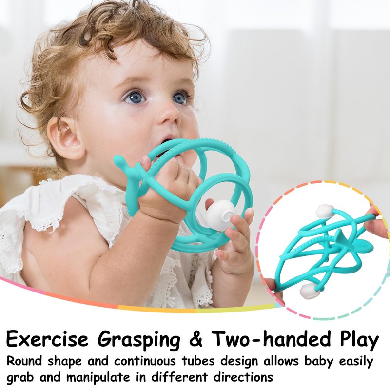 - EXERCISE GRASPING & TWO-HANDED PLAY. Round shape and continuous tubes lightweight design allows baby easily grab and manipulate in any directions. Exercise fine motor skills like grasping and two-handed play. Enhances baby's hand-eye coordination and sensory development while playing. Definitely worthwhile having in baby shower gift bags and baby registry.