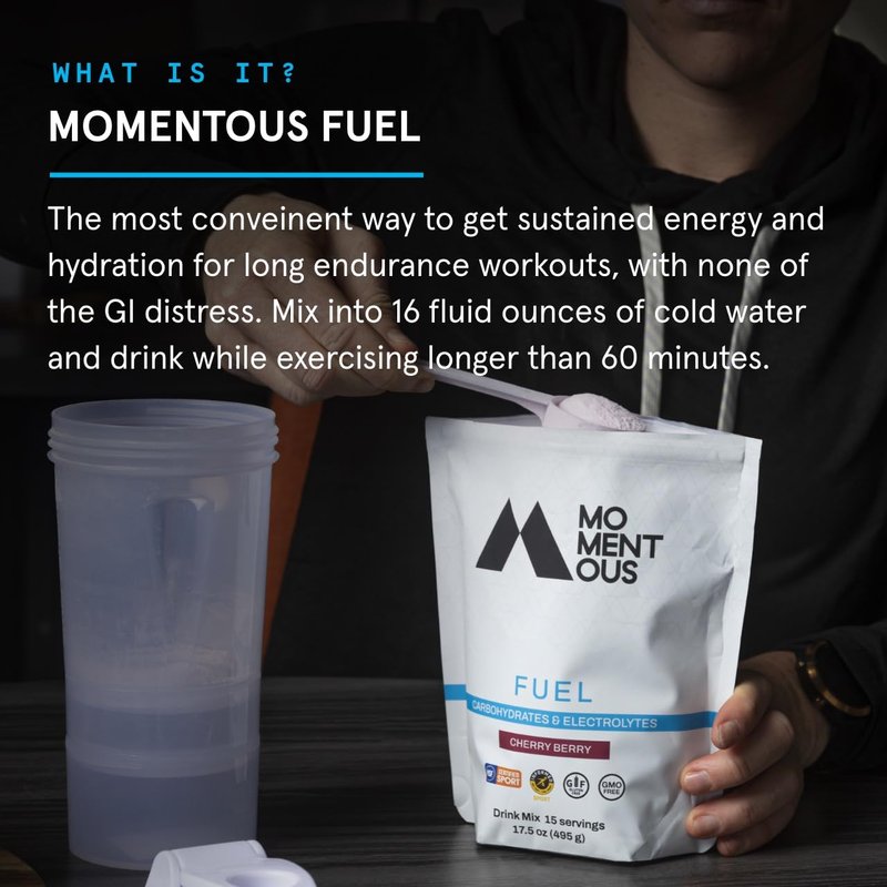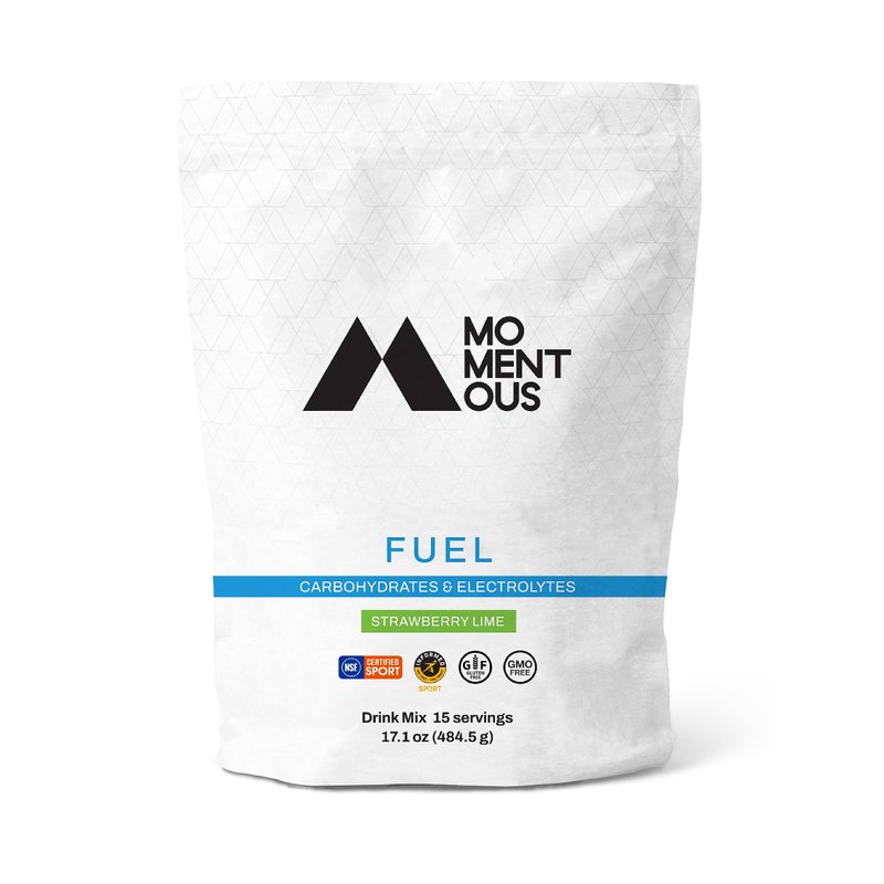 Momentous Fuel Intra-Workout Carbs & Electrolyte Drink Mix - Hydration Powder for Sustained Energy During Workouts - NSF Certified, GMO-Free, Gluten Free - 15 Servings, Strawberry Lime