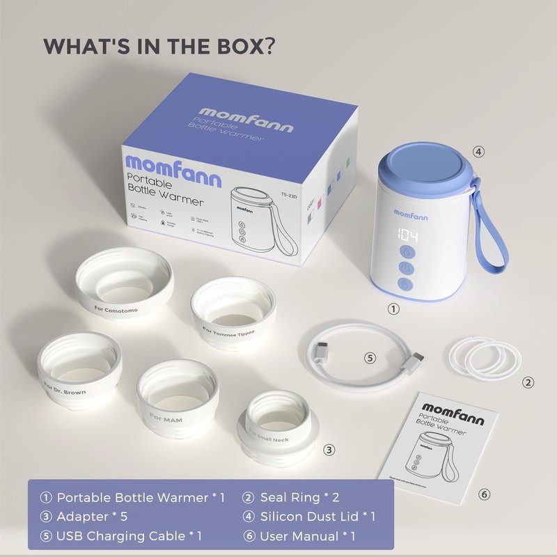MOMFANN Portable Bottle Warmer, Travel Baby Bottle Warmer for Breastmilk, Leak-Proof, Fast Heating, Multi-level Temperature control and Automatic Shut-Off