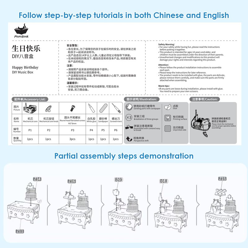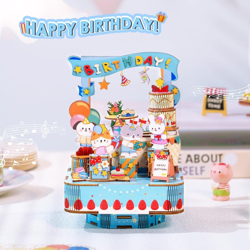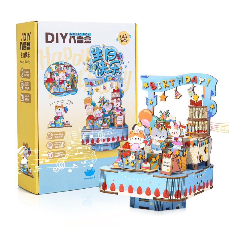- Happy Birthday Theme: MOMIBOOK wooden music box puzzle kit comes with exquisite packaging and is suitable for ages 14 and above. Hand-assembling a Happy Birthday music box to give to family and friends is of great significance. Christmas surprise, birthday surprise, Valentine's Day surprise, Mother's Day surprise, Father's Day surprise, New Year surprise, beautiful & creative choice for families, friends, lovers