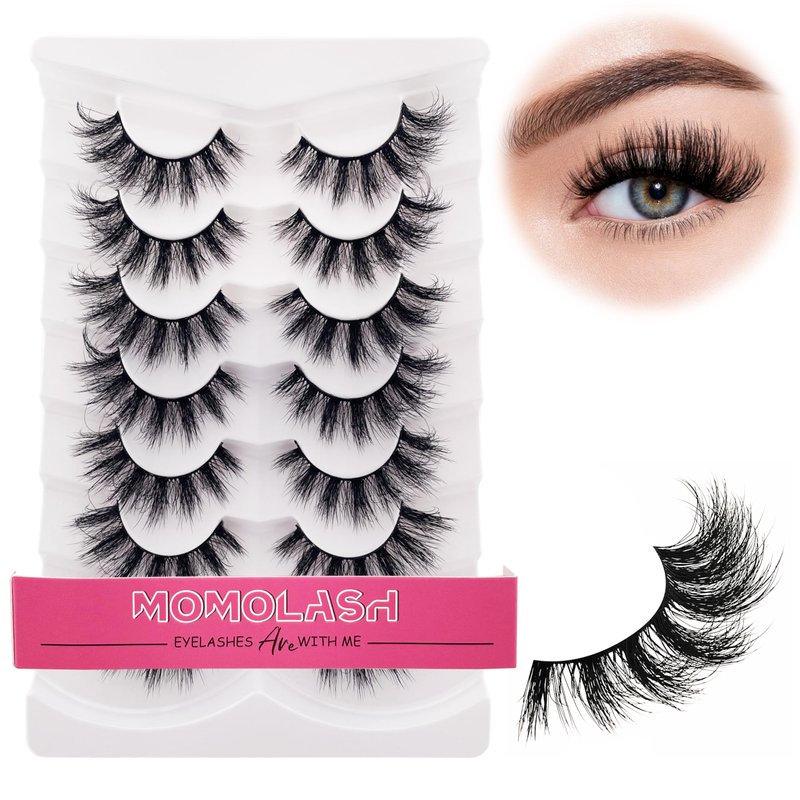 MOMOLASH Eyelashes Faux Mink Lashes Fluffy Cat Eye Lashes Wispy 8D Volume False Eyelashes Comfortable Hand Made Soft Curly Fake Lashes 7 Pairs Pack