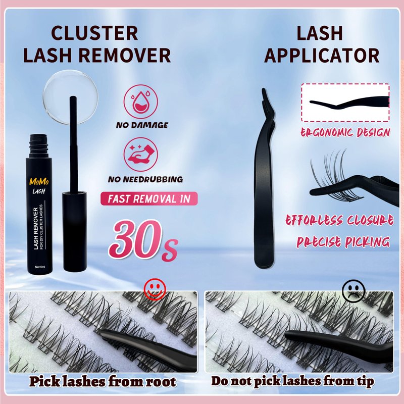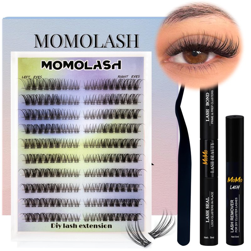 - WHAT YOU CAN HAVE: MomoLash Natural eyelash extension kit offers 180pcs high-quality lash clusters 9-11MM, 10ml lash bond and seal, 5ml remover, eyelash tweezers, offering all you need to diy eyelash extension at home, allowing you to achieve professional results in the comfort of your own home.