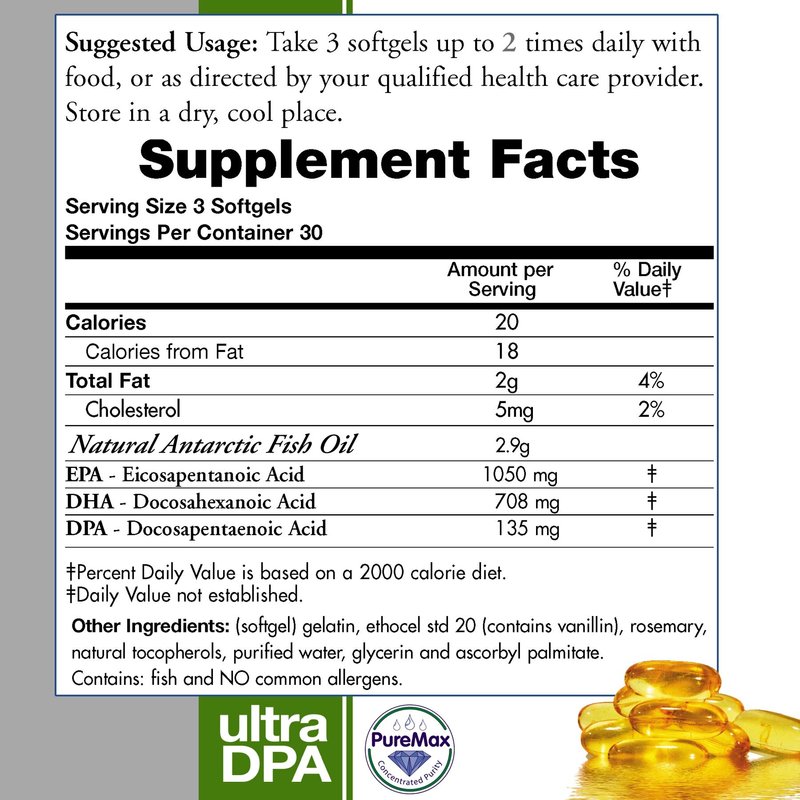 Wild Caught Antarctic Fish Oil Omega 3 2900 EPA-DHA-DPA with 2,900mg's (EPA 1050mg DHA 708mg DPA 135mg)