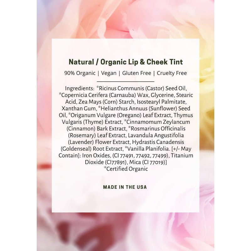 - This Lip and Cheek Tint will hydrate your skin while giving you a natural flushed cheek and rosy pout.