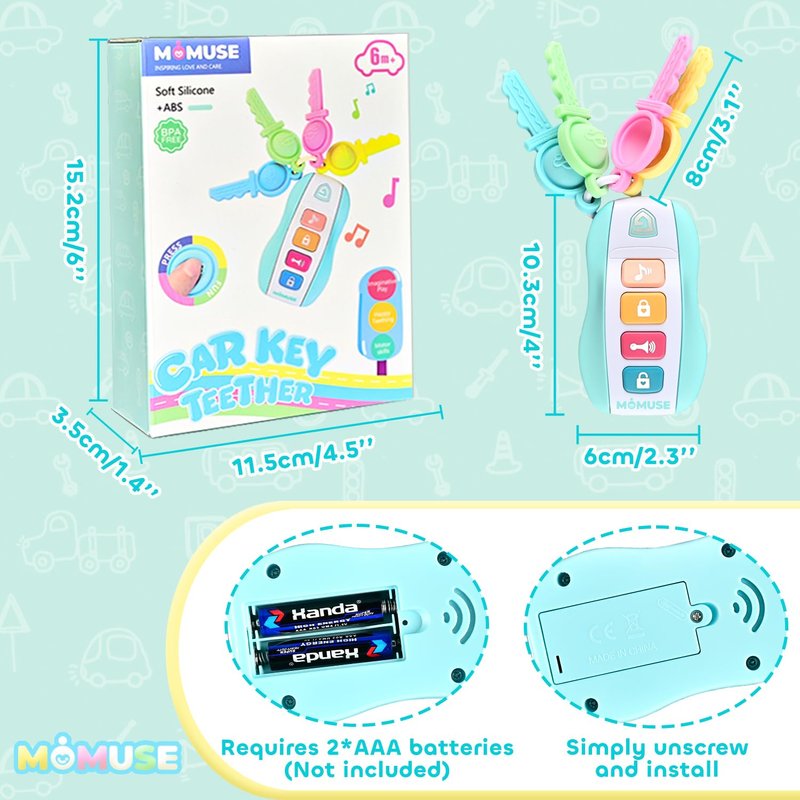 - Perfect Gifts for Baby Girls & Boys: This baby key teether is an ideal gift for baby's birthday, Easter, or Christmas. After installing 2*AAA batteries (not included), please make sure to tighten the screws on the battery cover. You can also use the teether without batteries if preferred