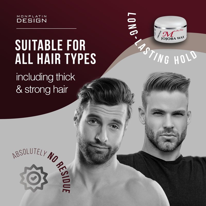 - NOURISHING TREATMENT: Say goodbye to dry, lifeless locks! Our Jojoba Hair Wax is not just your average styling product; it's a nourishing treatment that showers your hair and scalp with organic jojoba extract goodness and smells divine, it's the ideal choice for your daily styling routine. Mon Platin men’s hair wax is easy to rinse out and leaves no sticky or greasy feeling, No residue, just well managed hair.