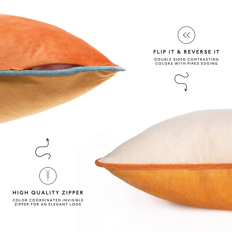 MONDAY MOOSE Decorative Throw Pillow Covers Cushion Cases, Set of 4 Soft Velvet Modern Double-Sided Designs, Mix and Match for Home Decor, Pillow Inserts Not Included (18x18 inch, Orange/Teal)